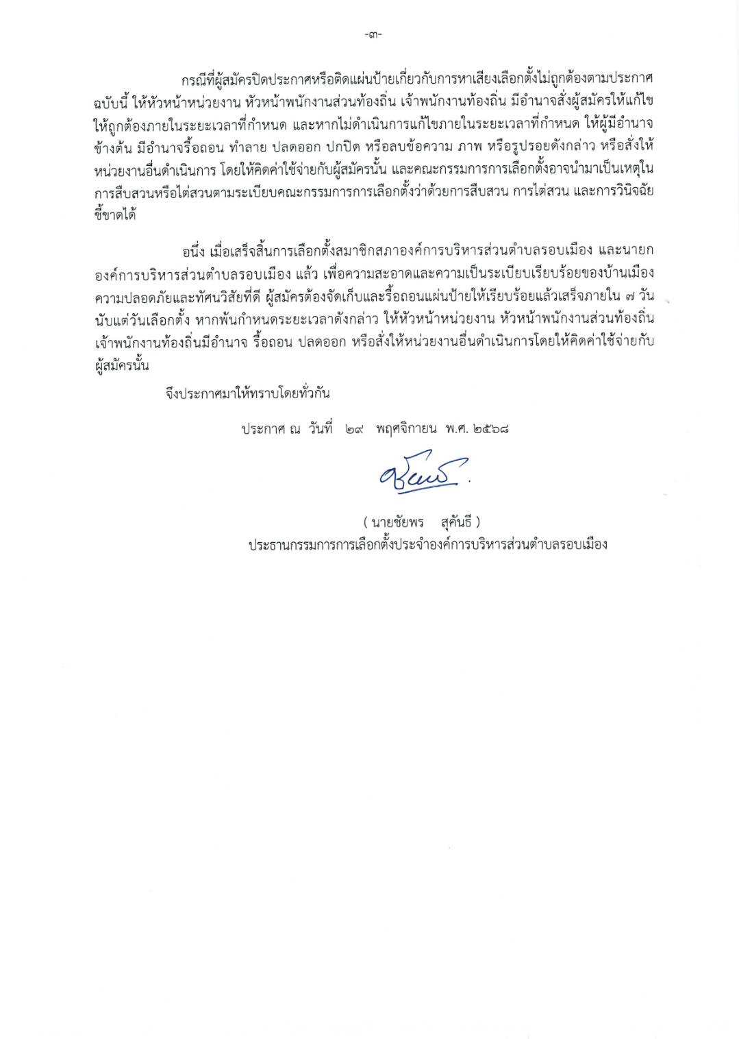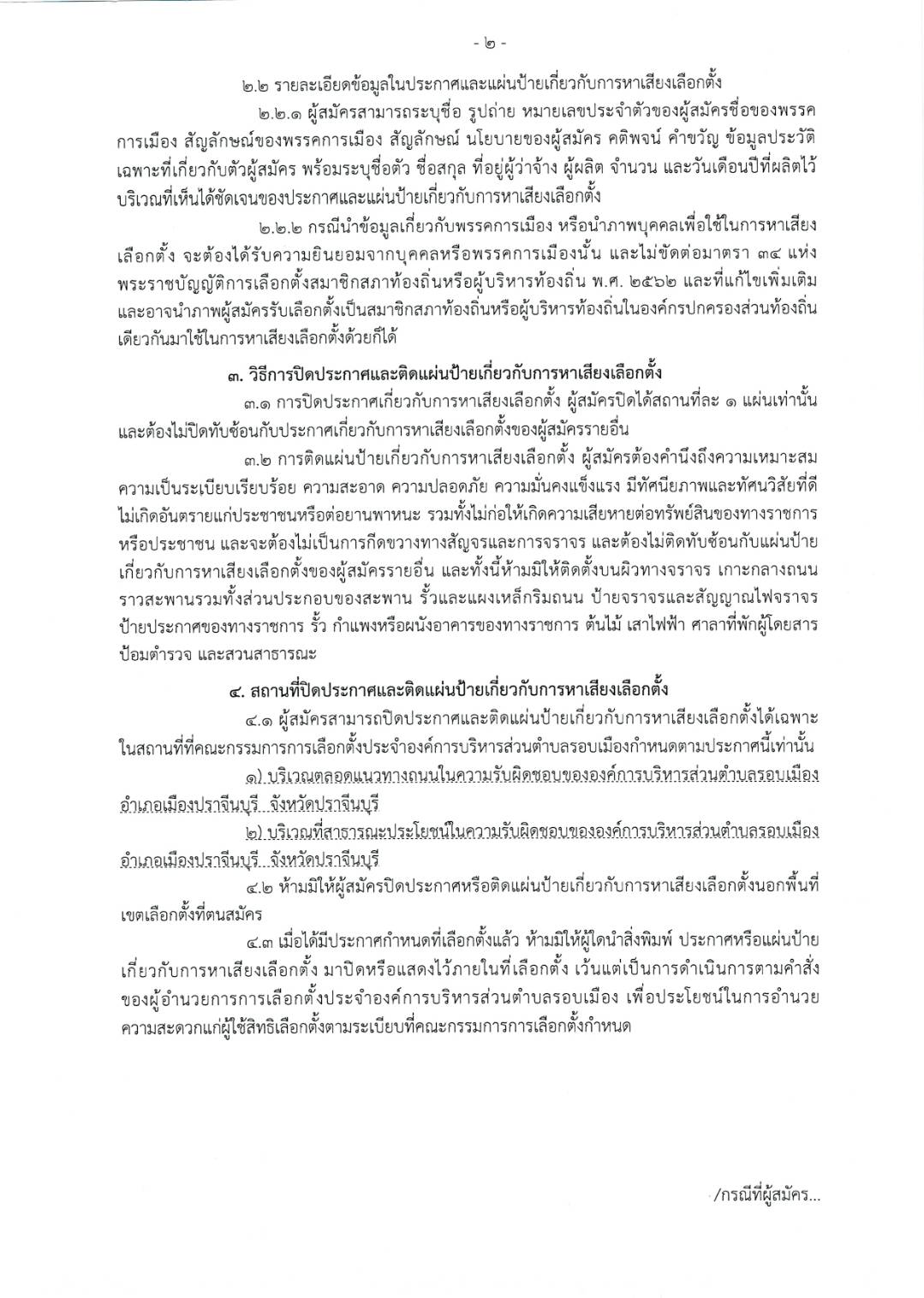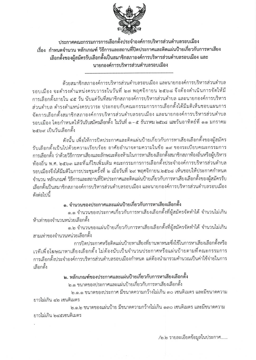 ประกาศกำหนดจำนวน หลักเกณฑ์ วิธีการและสถานที่ปิดประกาศและติดแผ่นป้ายเกี่ยวกับการหาเสียงเลือกตั้ง
